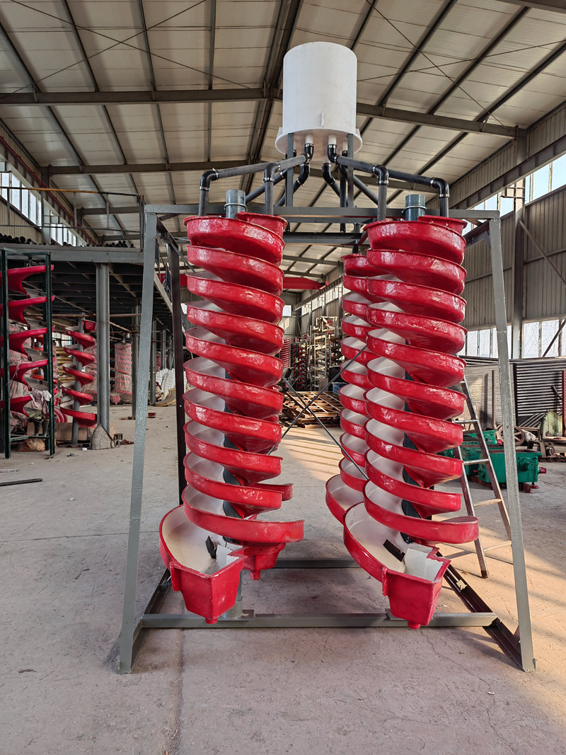 技術(shù)研革 我公司生產(chǎn)6-S搖床、螺旋溜槽已30載,型號從φ400—φ2000,選別曲線不斷優(yōu)化,從立方拋物線、橢圓曲線到復(fù)合曲線,使設(shè)備的選別性能更加優(yōu)化,滿足不同礦物選別的需求。世界上大規(guī)格的螺旋溜槽(直徑2000mm),就是我公司生產(chǎn)并通過部級技術(shù)鑒定而獲獎(jiǎng)的。現(xiàn)在我公司可生產(chǎn)318種不同規(guī)格型號的螺旋溜槽,可按用戶的“腳”制造適合的“鞋”,保證滿足用戶要求。我公司的高技術(shù)人員還可為設(shè)計(jì)方案提供咨詢意見,以便用戶獲得好的經(jīng)濟(jì)指標(biāo)。