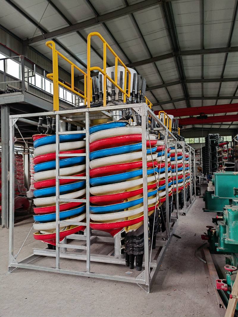 公司有玻璃鋼化工技術(shù)及制造工藝的優(yōu)勢,早在1988年就研制開發(fā)了國內(nèi)大直徑及新斷面特性的DL—2000型兩米直徑玻璃鋼螺旋溜槽。該設(shè)備一臺處理能力相當(dāng)于40臺搖床,選別指標(biāo)優(yōu)良。1989年通過部級技術(shù)鑒定并獲獎,填補(bǔ)國內(nèi)選礦設(shè)備一項空白。20多年來,公司先后開發(fā)了一系列玻璃鋼選礦新設(shè)備,使設(shè)備性能、結(jié)構(gòu)參數(shù)更臻完善。就玻璃鋼螺旋溜槽φ400—φ2000各類系列產(chǎn)品和各種床條結(jié)構(gòu)的玻璃鋼搖床而言,公司擁有國內(nèi)完備的直徑與型號系列;完善的結(jié)構(gòu)參數(shù);過硬的制作質(zhì)量;新穎的改進(jìn)型式;可靠的設(shè)備選型方法。